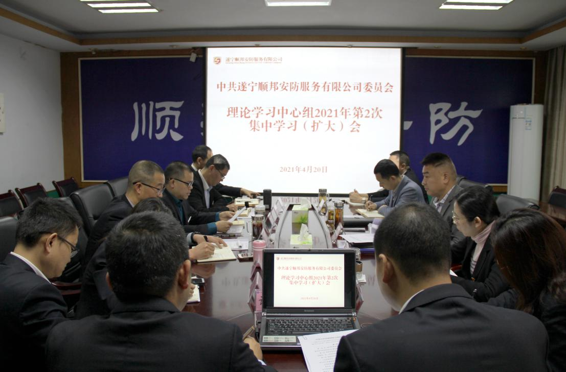 ? ? 4月20日中共遂寧順邦安防服務(wù)有限公司委員會(huì)理論學(xué)習(xí)中心組召開2021年第2次集中學(xué)習(xí)(擴(kuò)大)會(huì),會(huì)上圍繞“黨史學(xué)習(xí)教育、維護(hù)國(guó)家安全”主題,組織學(xué)習(xí)習(xí)近平《論中國(guó)共產(chǎn)黨歷史》、《中華人民共和國(guó)保守國(guó)家秘密法》。黨委書記、執(zhí)行董事、總經(jīng)理唐清華主持會(huì)議。